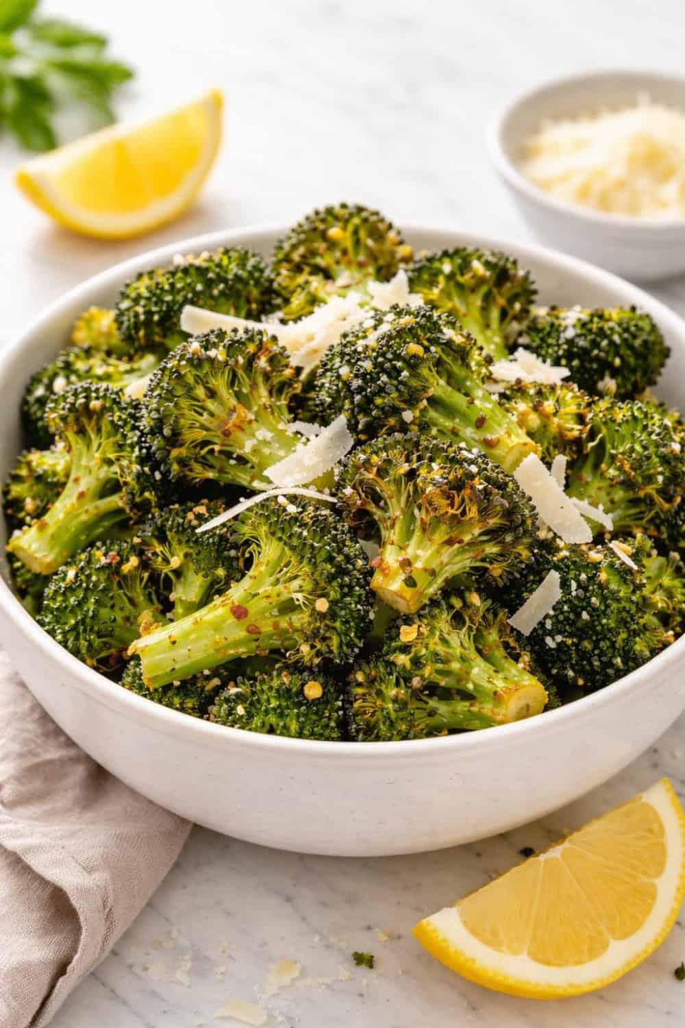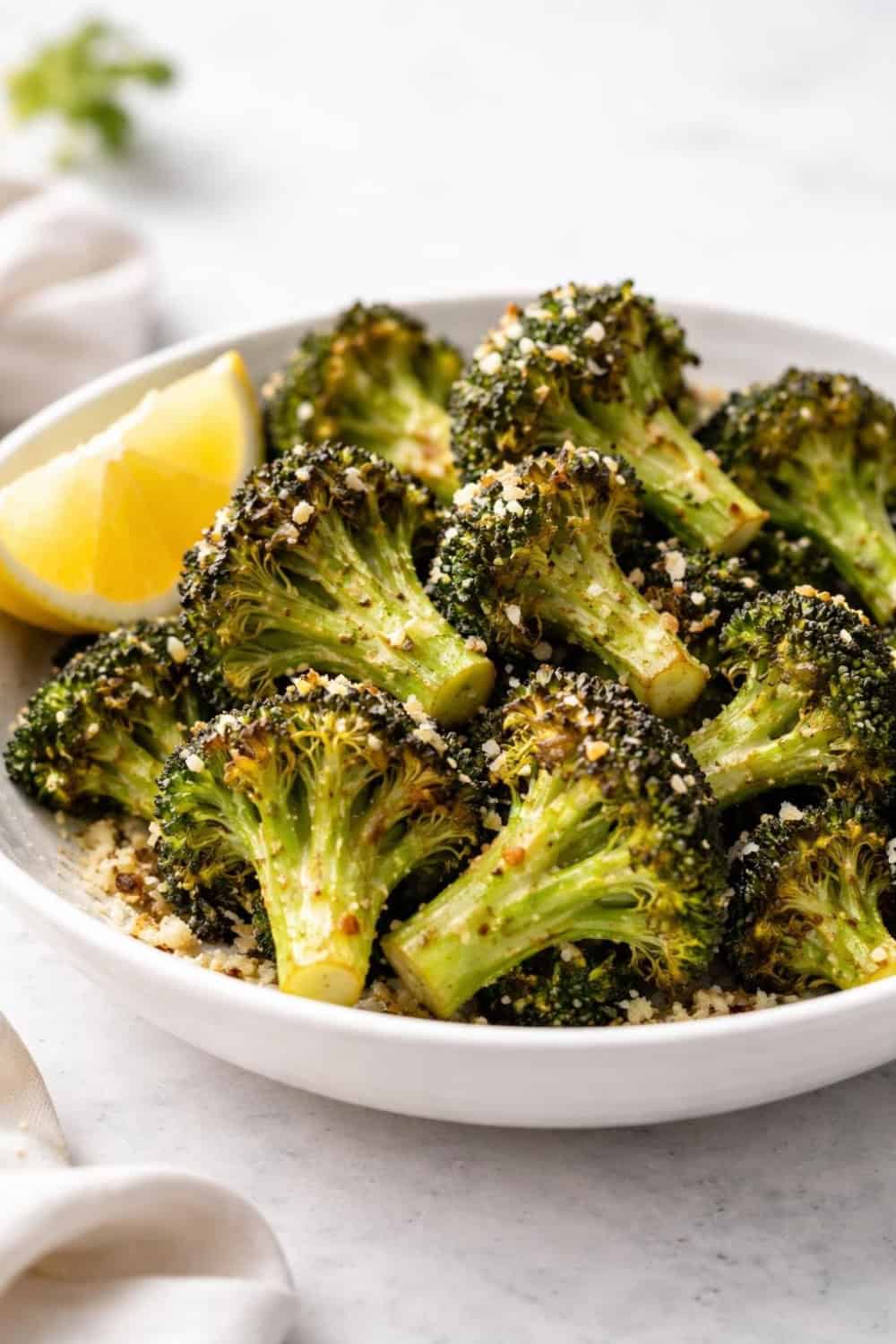 The air fryer gives the broccoli these gorgeous crispy edges that roasting in the oven just can’t replicate as quickly. Garlic and Parmesan are a classic pairing for a reason, and a final hit of lemon juice brightens the whole thing up.