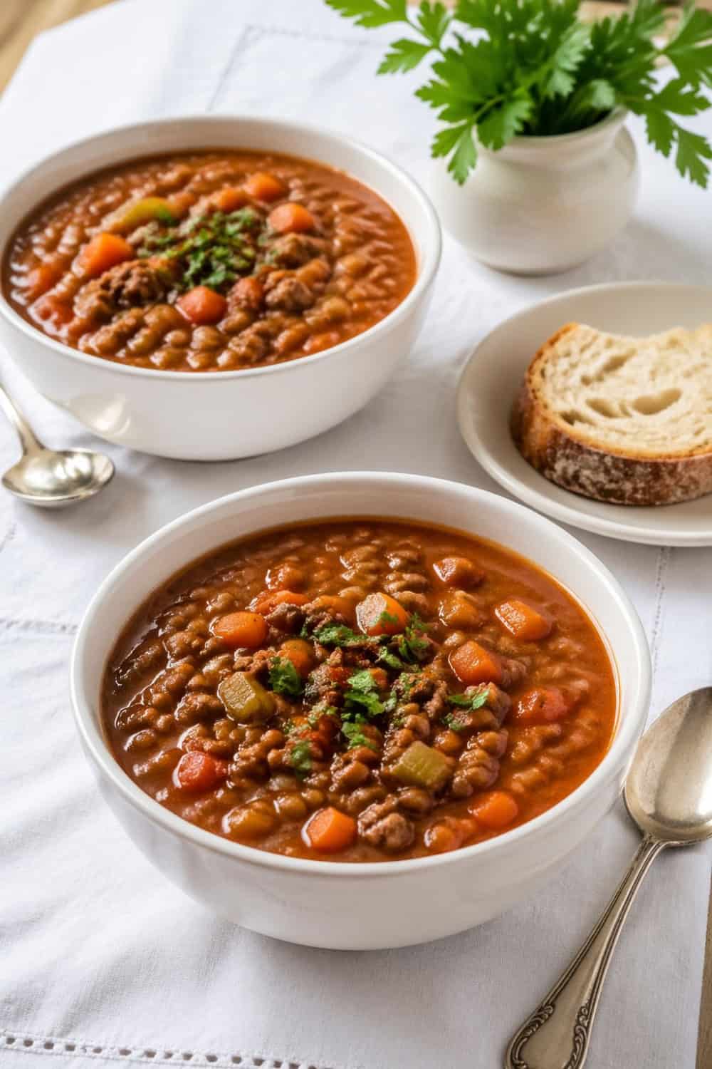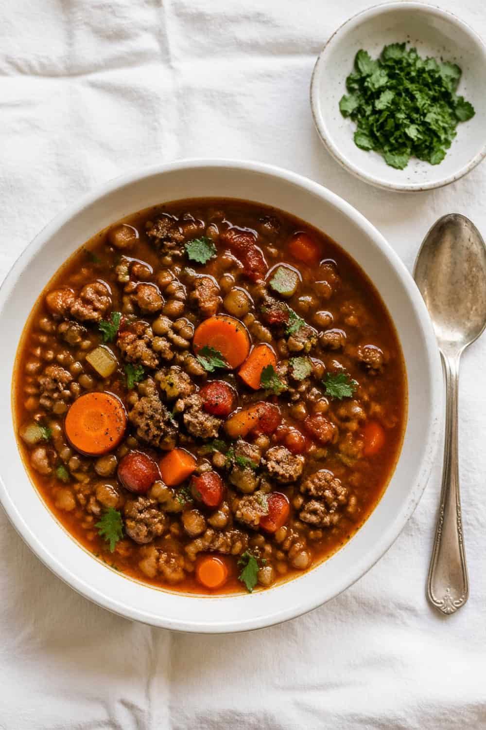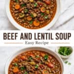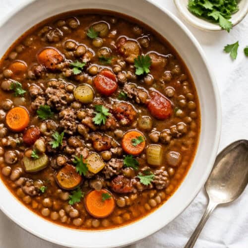 This hearty beef and lentil soup is loaded with rich, savory flavor, filling enough for a full meal, and easy to make in one pot.