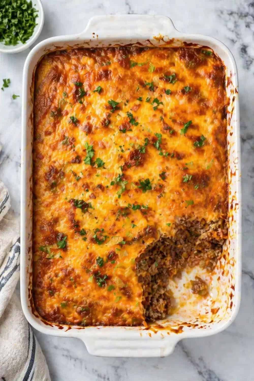 If you notice the rice still has a little bite after the covered bake, add 2–3 tablespoons of broth, re-cover, and bake for another 5 minutes. Always let the casserole rest before serving — this allows the liquid to fully absorb and the layers to set up nicely, giving you clean, hearty scoops.