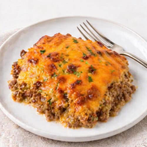Ground turkey or ground pork work great in place of beef — just note the flavor will be slightly lighter. You can swap cream of mushroom soup for cream of chicken or cream of celery if that’s what’s in your pantry.