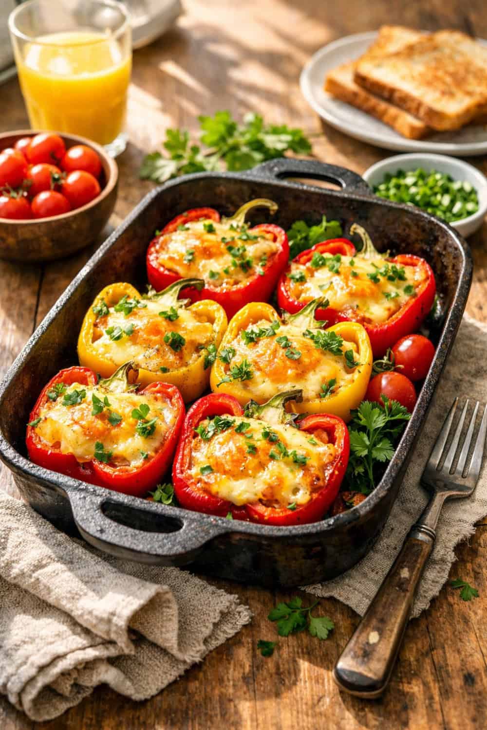 Here’s what I’ve learned through trial and error: Pre-bake the peppers for about 15 minutes if you prefer them softer. If the eggs aren’t setting properly, lower the temperature to 350°F and tent with foil.