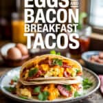 Crispy bacon, fluffy scrambled eggs, and melty cheese wrapped in warm tortillas – these breakfast tacos bring bold flavors to your plate!