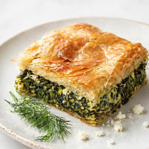 The most important thing with phyllo is keeping it covered with a damp towel while you work — it dries out and cracks within minutes of hitting the air. Work quickly with each sheet. Always squeeze your spinach as dry as humanly possible; excess moisture will turn your bottom layers into a soggy mess.