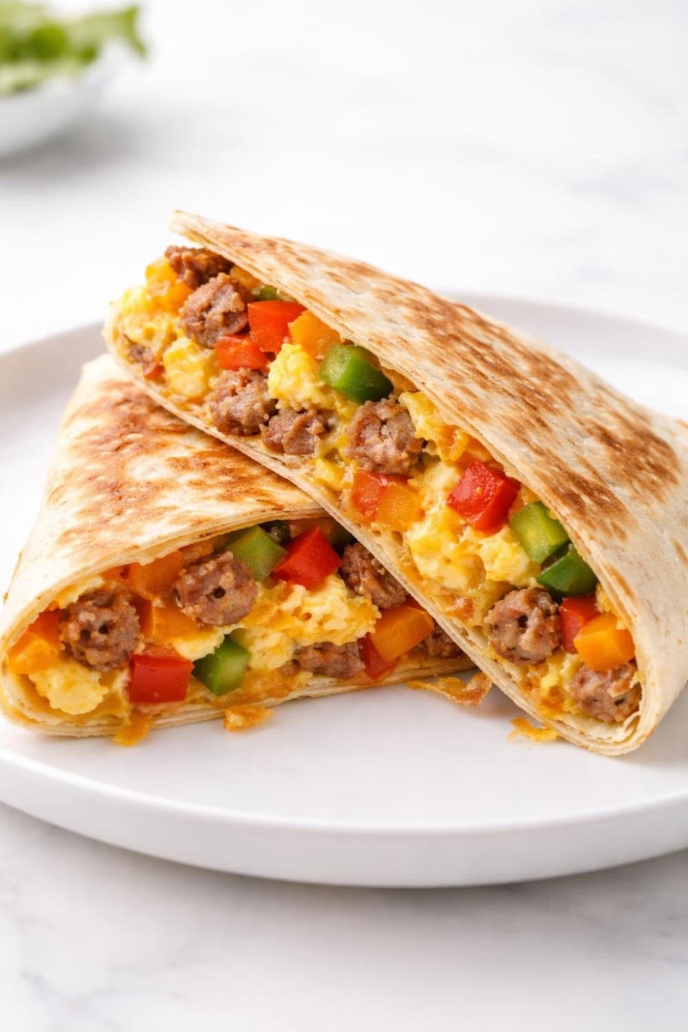 - Assemble. Lay a tortilla flat. On one half, layer a scoop of egg mixture, a spoonful of the sausage and veggie mix, and a generous handful of cheese. Fold the tortilla over.