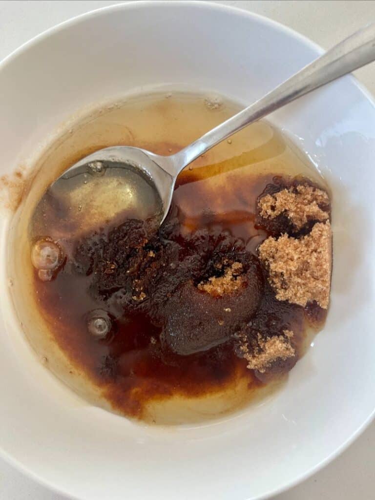 - In a microwave-safe bowl, combine butter, honey, and brown sugar