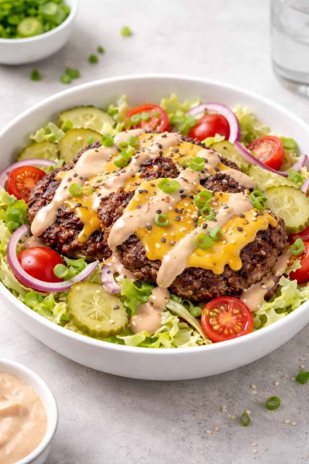 These smash burger bowls are filling enough on their own, but pairing them with a side of crispy oven fries or onion rings takes the whole meal to another level. For a lighter spread, a simple cucumber and tomato salad dressed with a little red wine vinegar balances out the richness of the beef and sauce.